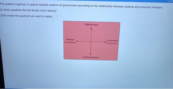 Click inside the quadrant you want to select. Aal Heading GED Ready - Social Studies - yubin ye Time Remaining 001452 Question 7 of 17 Highlight 3 Elag for Review This graphic organizer is used to classify systems of government according to the relationship between political and economic freedom. The importance of Marbury v.